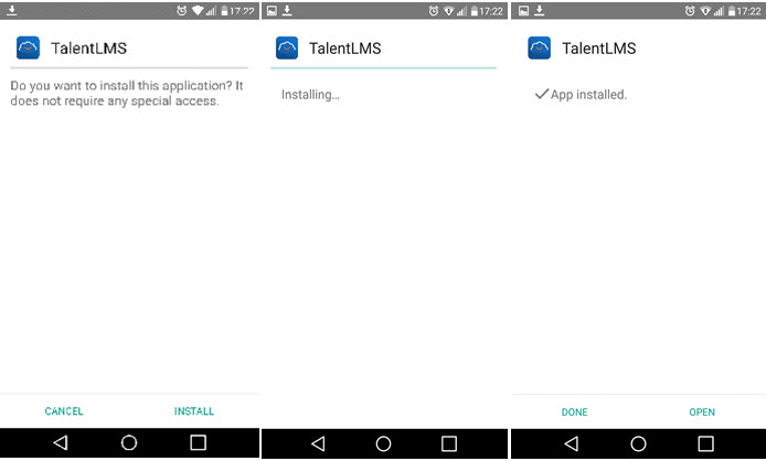 The TalentLMS Android app is available for free at the Google Play store. However, in some countries, all access to the Google Play store is blocked. In such cases, we let you sideload the app to your mobile device through a direct link.